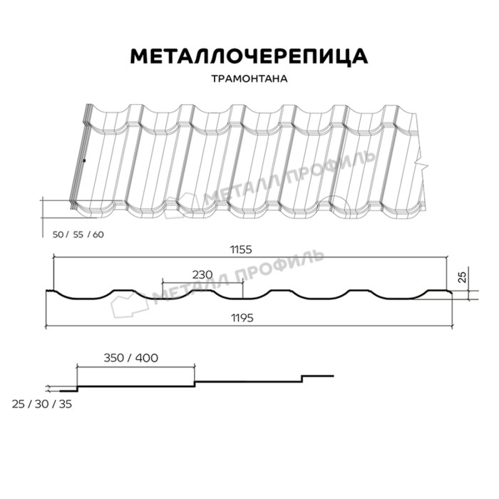 Металлочерепица Металл-Профиль Трамонтана-X 0,5 NormanMP RAL 6005 Зеленый мох