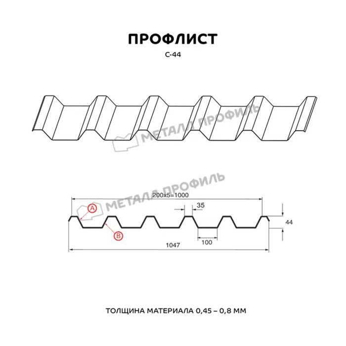Профлист Металл Профиль С-44 0,8 Цинк Бесцветный