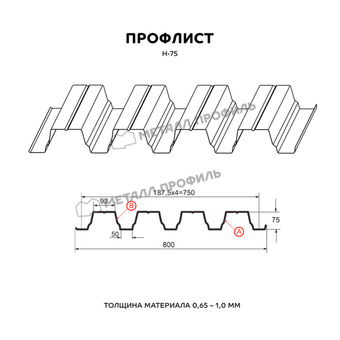 Профлист Металл-Профиль Н-75 Полиэстер 0.7 мм RAL 3009 Красная окись Показать информацию