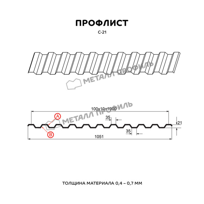 Профлист Металл-Профиль С-21 Полиэстер 0.4 мм RAL 5005 Синий насыщенный