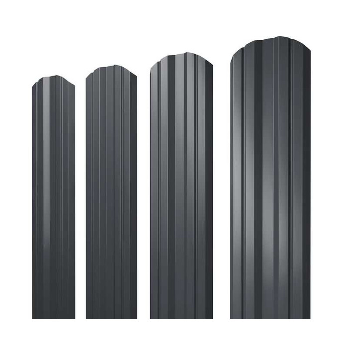 Штакетник Полукруглый Slim фигурный Grand Line 0,5 Satin Matt RAL 7024 Мокрый Асфальт Показать информацию